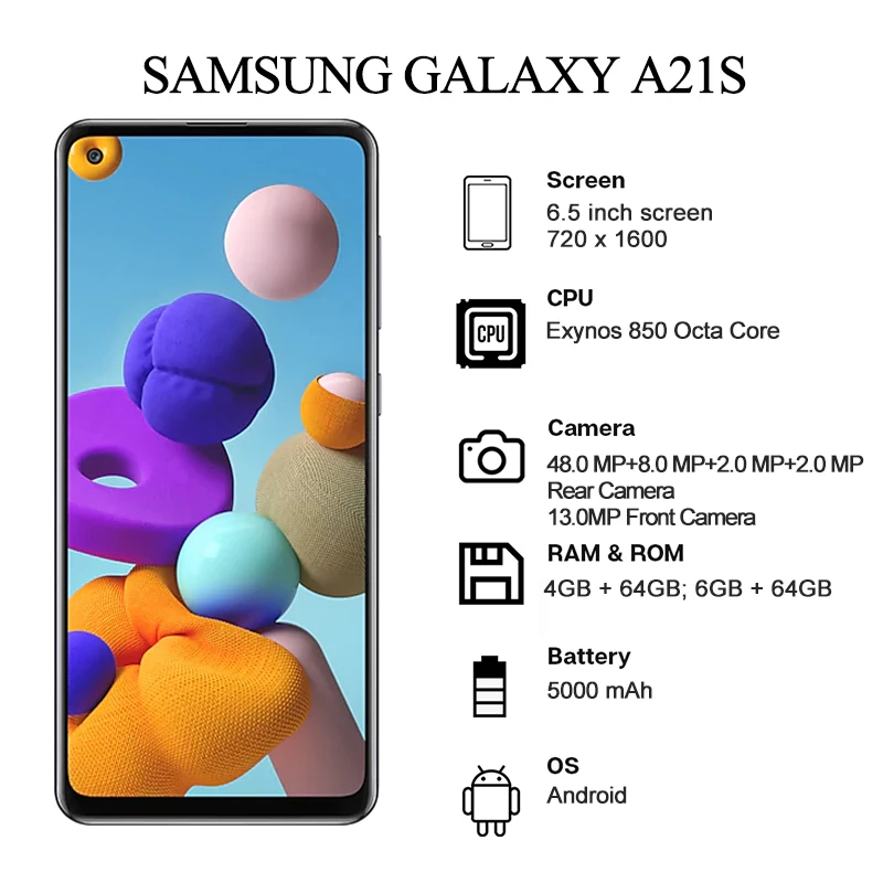 Global Version Samsung Galaxy A21s Smartphone 6.5" 4GB/6GB RAM Exynos 850 Octa-core 48MP AI Quad Cameras 5000mAh Cellphone