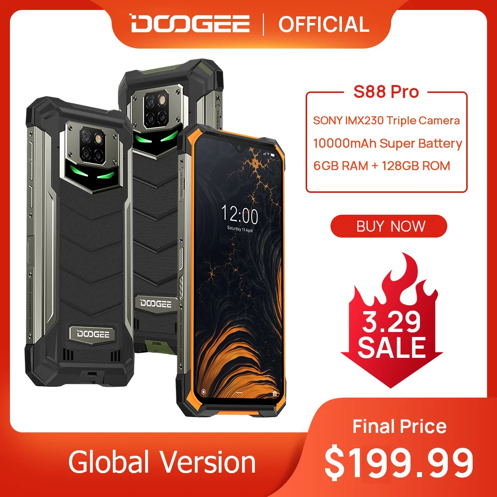 IP68/IP69K DOOGEE S88 Pro Rugged Mobile Phone 10000mAh telephones Helio P70 Octa Core 6GB RAM 128GB ROM smartphone Android 10 OS