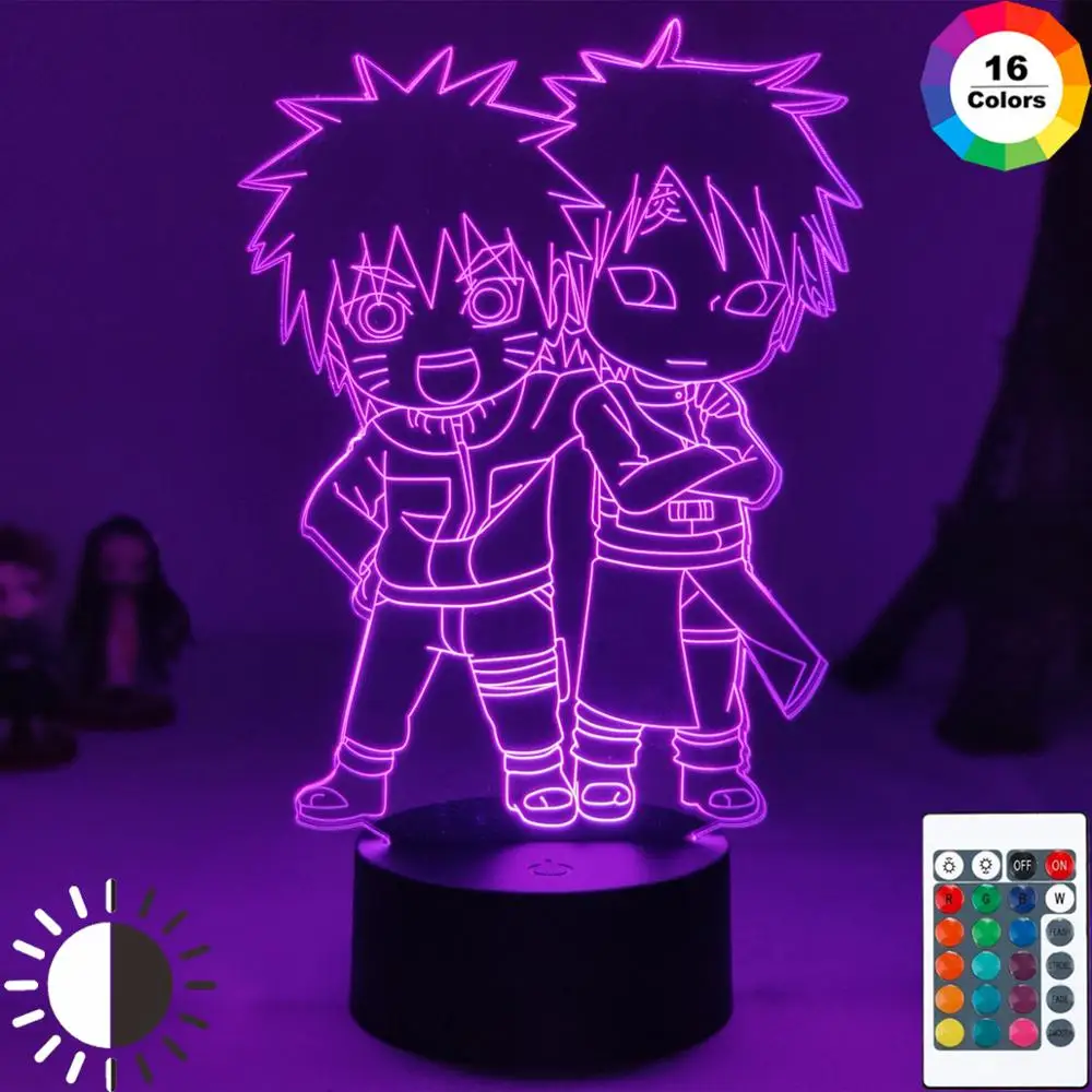 Japanese Anime Cute Naruto and Gaara Figure 3d Led Night Light for Kids Bedroom Decoration Best Birthday Gift Child Bedside Lamp